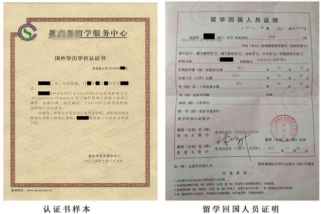 留学回国人员证明(样本)