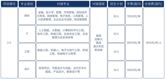 留学模式2+2,1+3学历层次本科