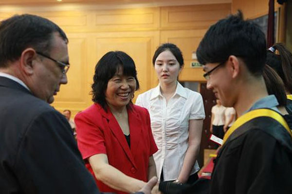 董院长和李老师为2014届毕业颁发毕业证书