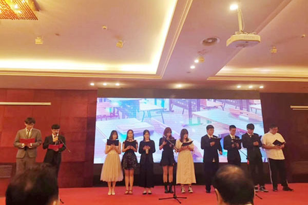 最后新生们献上了精彩的文艺汇演,英文朗诵、笛子伴唱、英文小组唱等精彩的演出博得新生们的阵阵欢呼,刚入学的紧张感也一扫而空。结尾部分以《我和我的祖国》高潮作结,现场所有新生和家长代表与演唱人员一同高唱,场面十分震撼,国际本硕预科用这场别开生面的活动迎接2020级新生,表达爱国之情的同时也为新生们带来了一场“沉浸式”的爱国思政课体验。